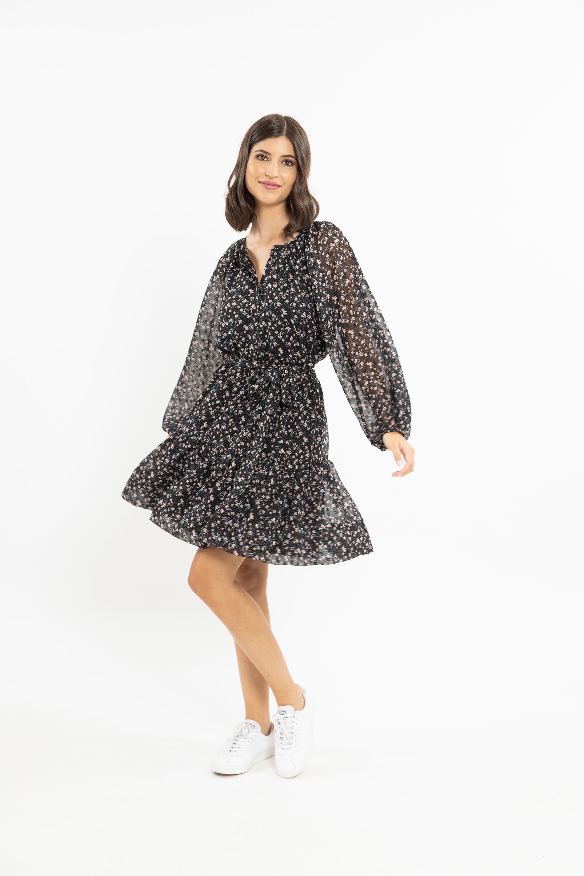 The Flourish Dress features a layered skirt, a tailored waist, and 3/4 sleeves for an elegant, polished look. Crafted from high-quality materials and lined for extra comfort, it's an effortlessly stylish addition to any summer wardrobe.