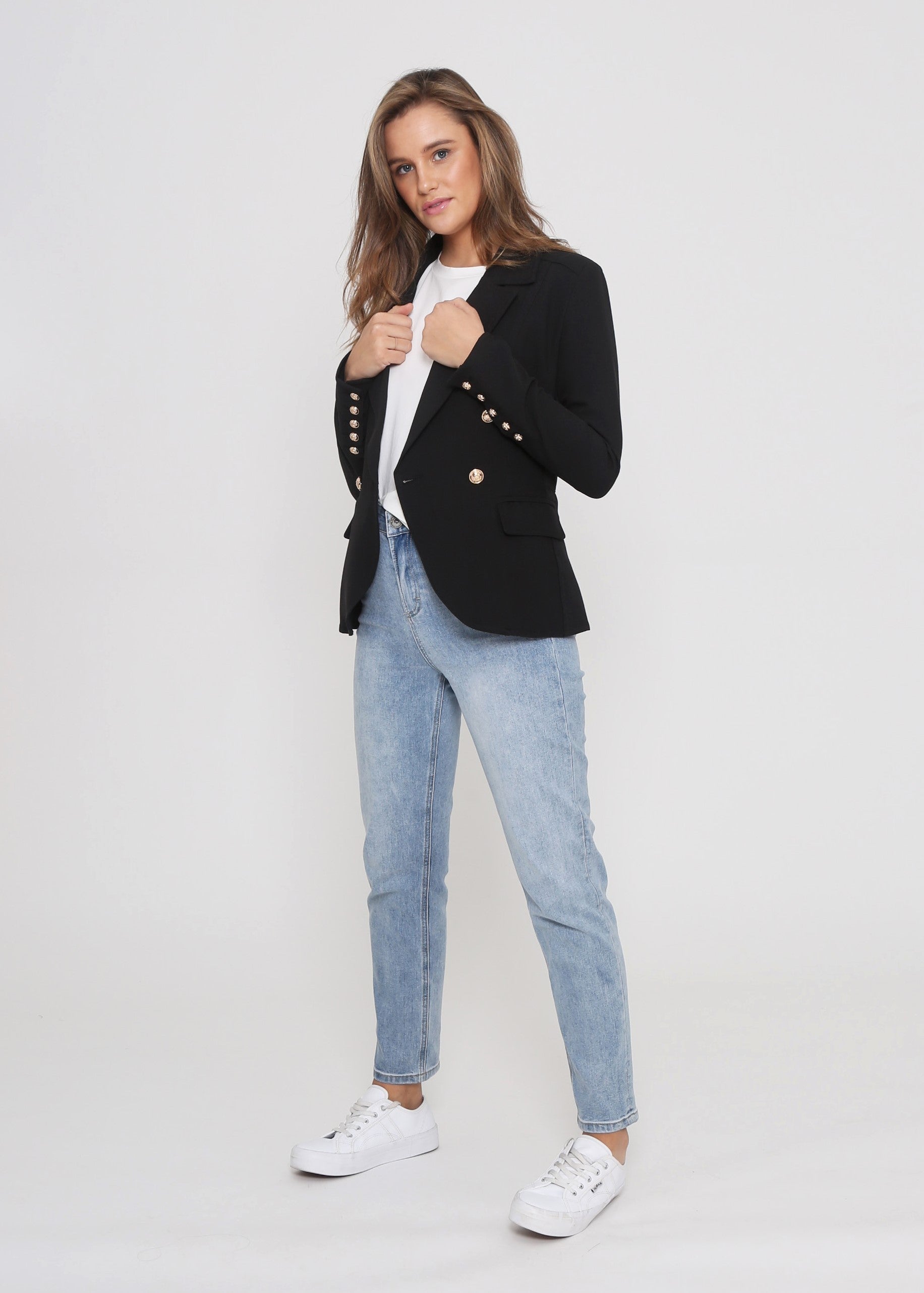 Be ready for any occasion with the Hayden Blazer. This black Rider style offers button details, creating the perfect fit for any casual style. With the Hayden Blazer, you can show off your unique look in any situation.