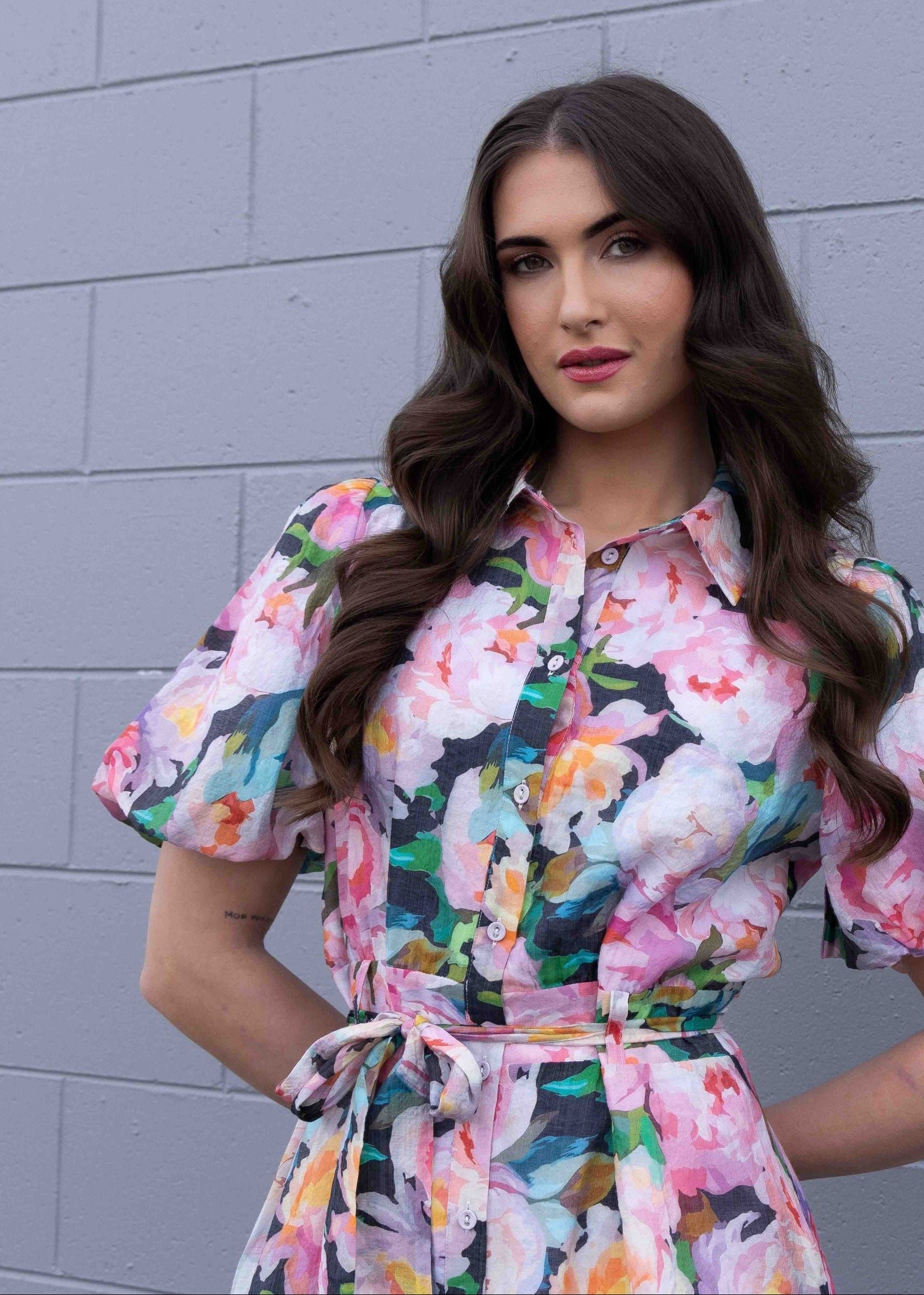 The Seeking Lola J'Adore Maxi Dress is your ultimate style companion, perfect for everything from Summer BBQs to Garden Weddings. With its beautiful Canvas Floral print like print of the full colour spectrum, flowing design, and adjustable waist tie, it’s as versatile as it is stunning.