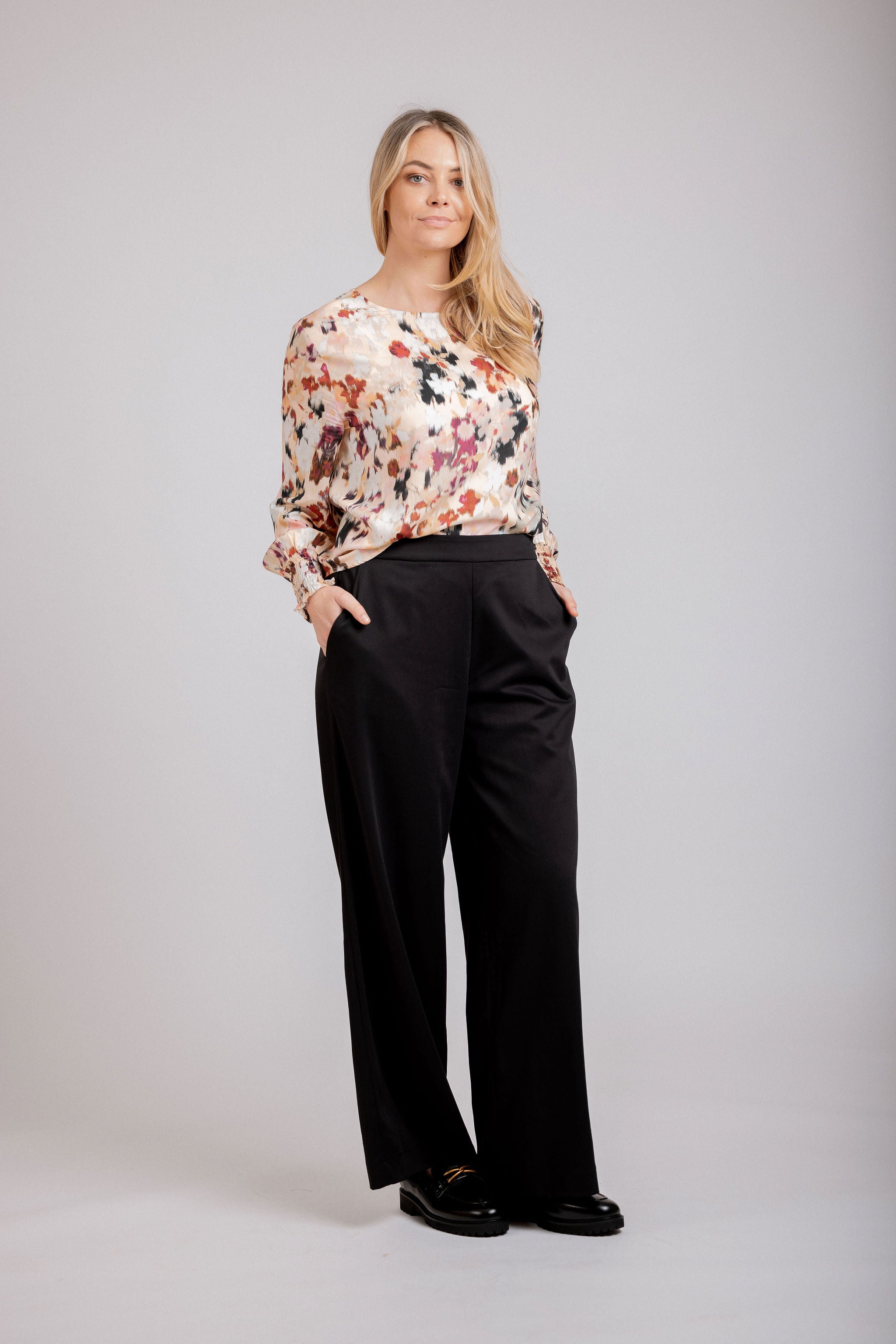 A modern twist on effortless sophistication, the Finley Top in Abstract showcases an artistic blend of colors and brushstroke patterns. The fluid silhouette, soft texture, and subtle detailing make it a wardrobe favorite. Whether styled with structured pants or casual denim, it’s a standout piece.